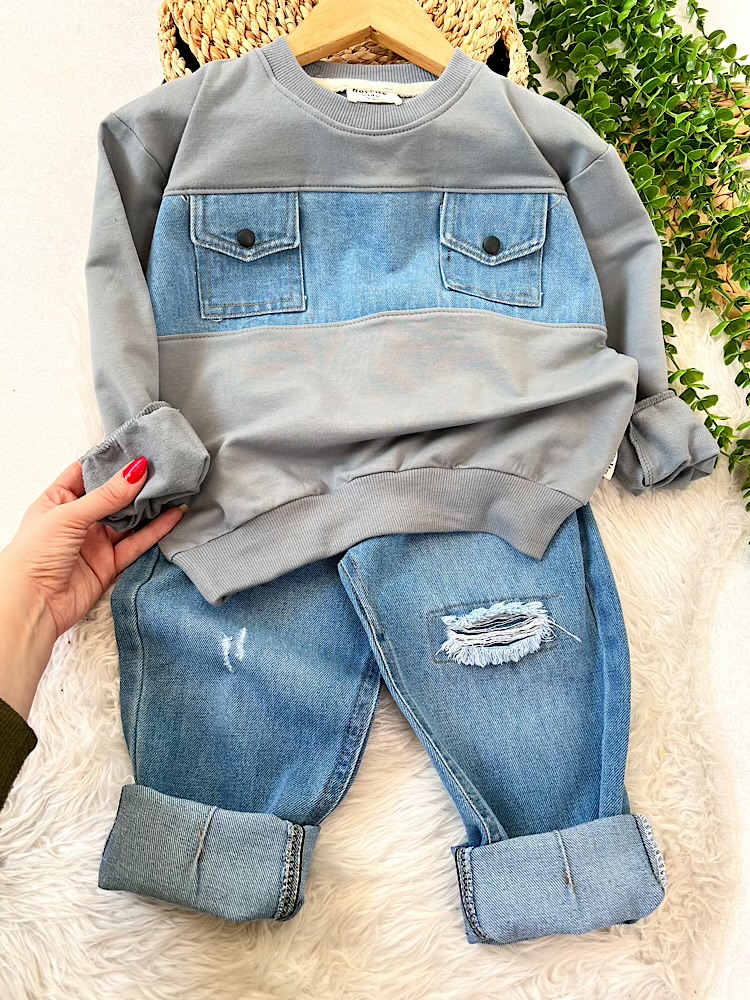 ست بلوز و شلوار تیکه دوزی جین لباس عیدانه