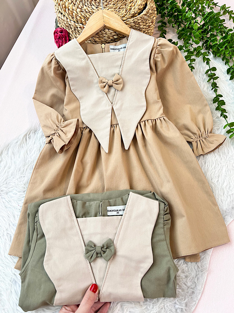 پیراهن پاییزی آستین بلند کتان دخترانه