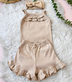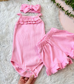 سه تیکه رامپر و‌ شورتک و تل چین دار نوزادی کبریتی