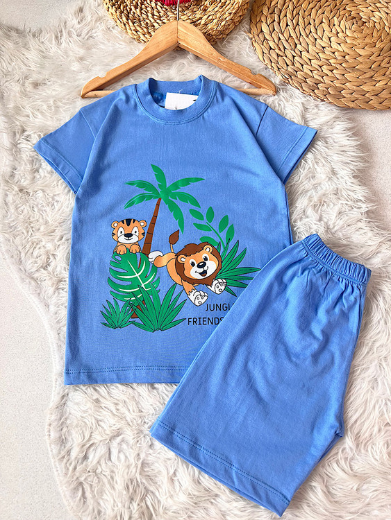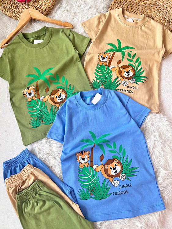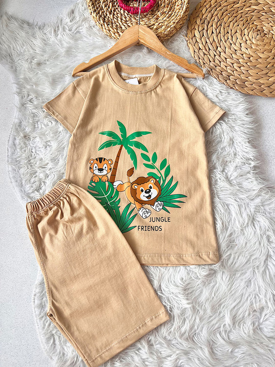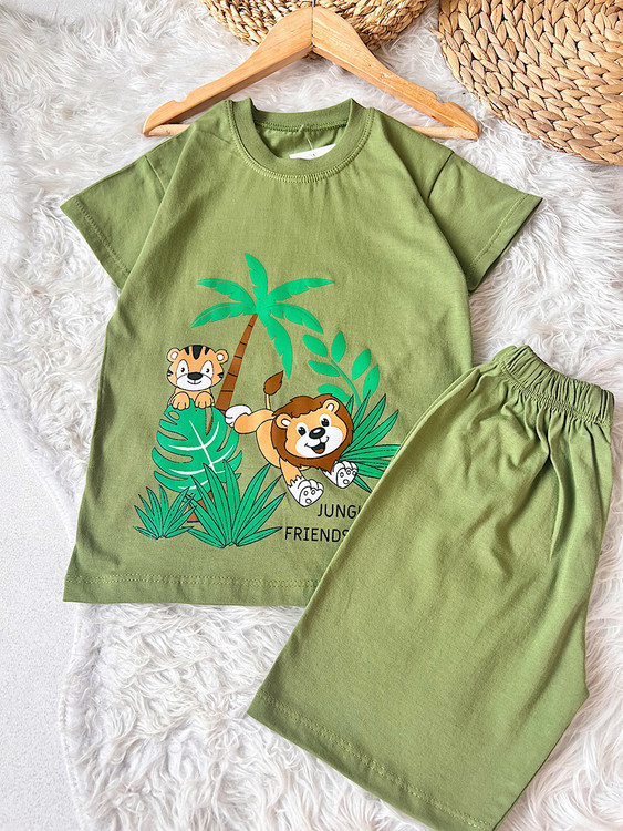 تیشرت و شلوارک خانگی پسرانه طرح حیوانات جنگل