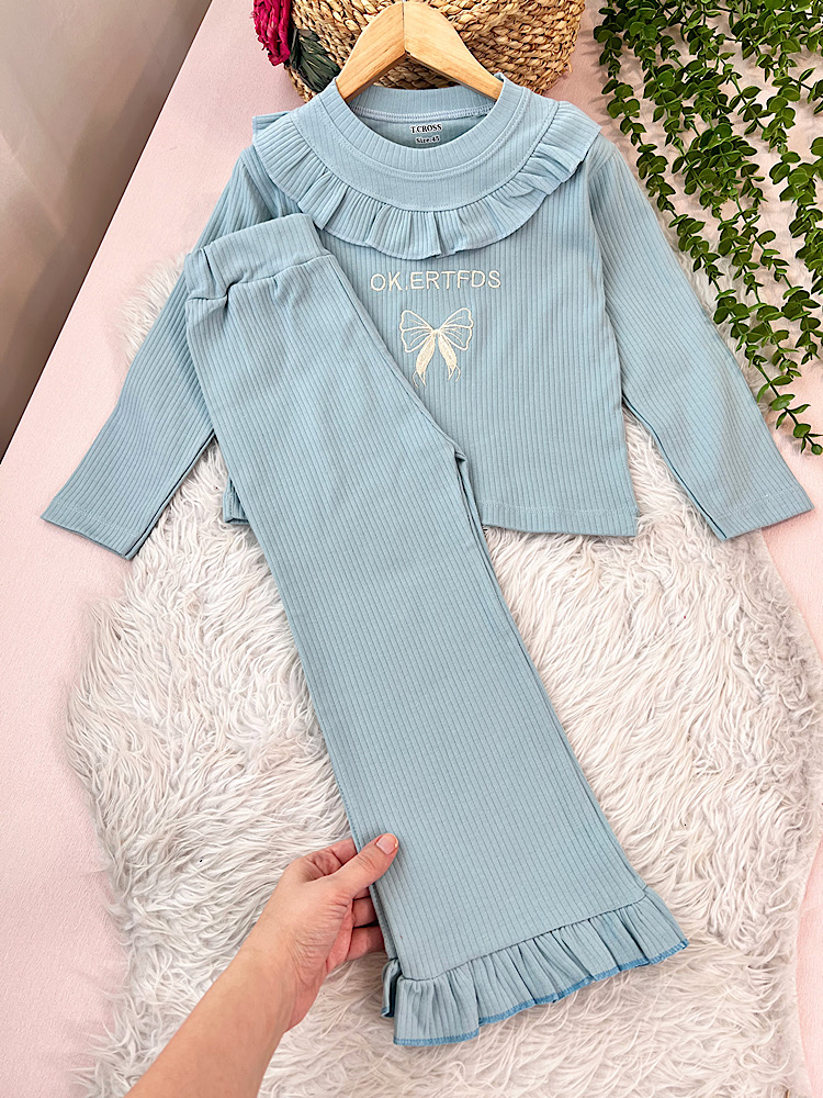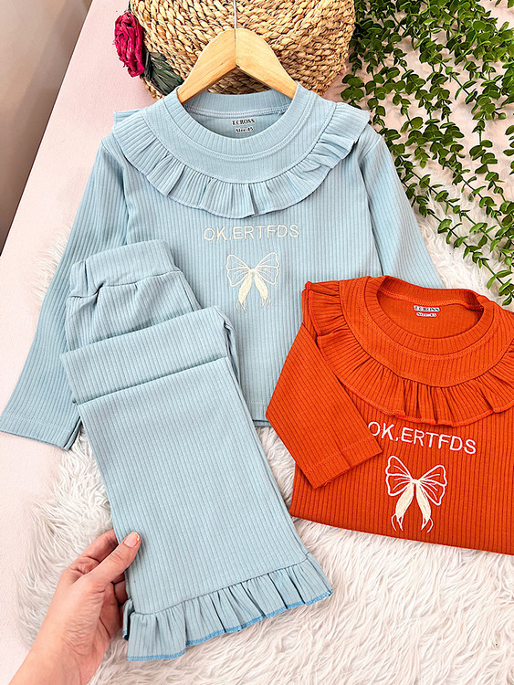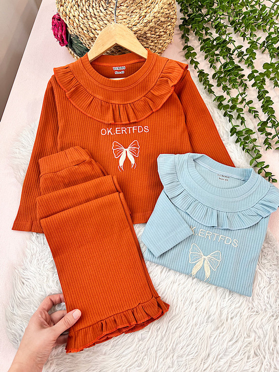 ست بلوز و شلوار دخترانه چین دار کبریتی