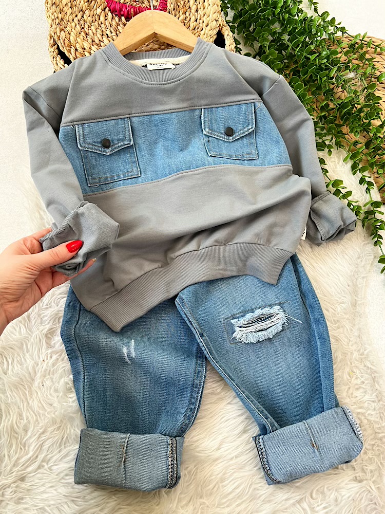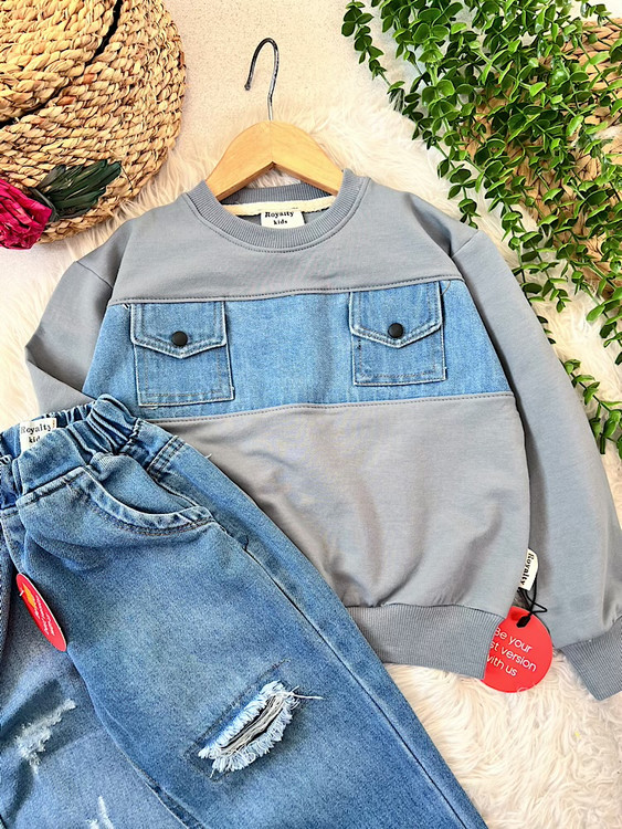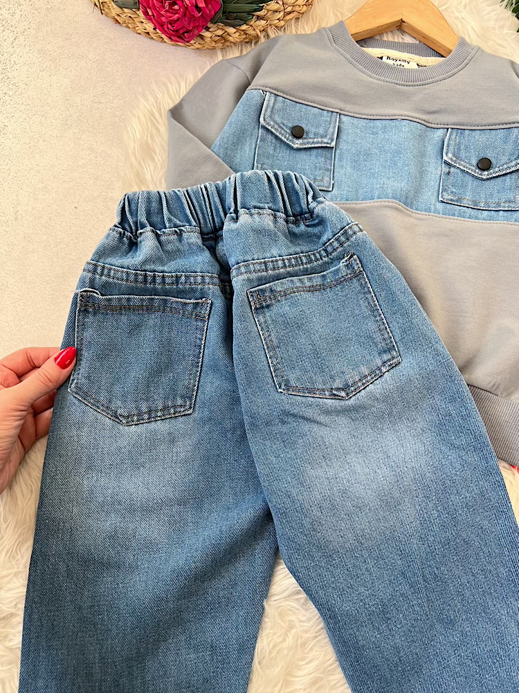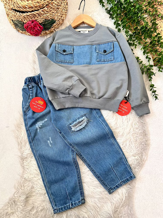 بلوز و شلوار تیکه دوزی جین یه ست زیبا و جذاب که هم میتونین برای پسرها و هم برای دخترها استفاده کنین